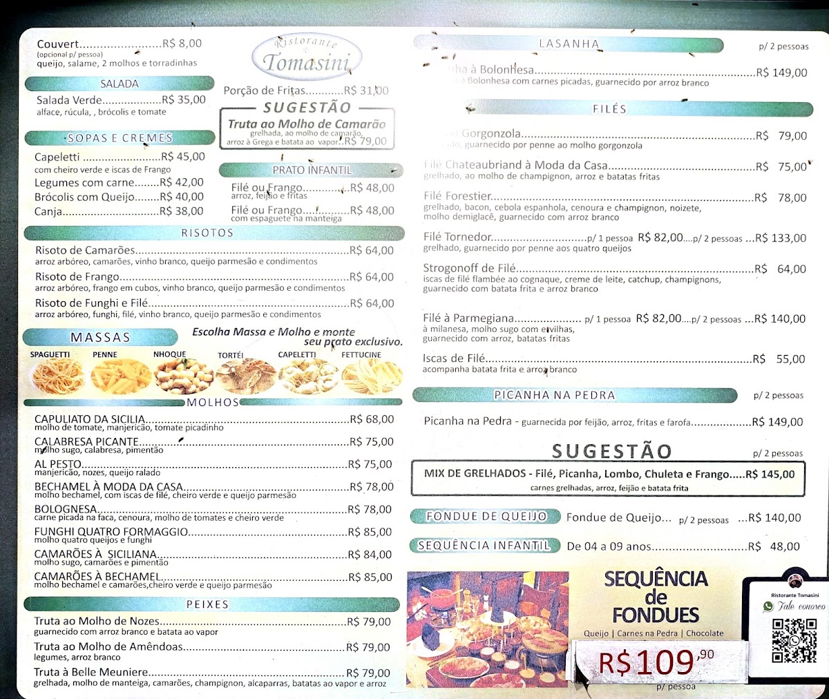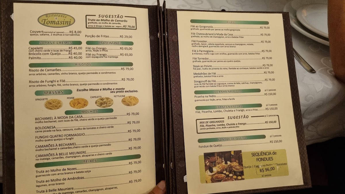 Ristorante Tomasini in Gramado offers an authentic Italian culinary journey centered around its standout fondue selections. The menu features a well-crafted sequência de fondue with rich cheese, savory chicken, beef, and pork options, accompanied by a variety of flavorful sauces that elevate each bite. For dessert, a decadent chocolate fondue paired with fresh fruits creates a memorable finale. Patrons consistently praise the quality and generous portions, creating a dining experience that balances traditional flavors with cozy ambiance. The blend of professional service and an inviting, romantic atmosphere adds to the overall allure, making each meal feel special and immersive. Whether you seek a comforting dinner or a unique celebration, Ristorante Tomasini’s menu delights with its attention to detail and dedication to genuine Italian taste, wrapped in warm hospitality and a charming setting.